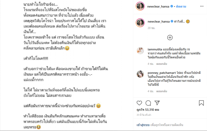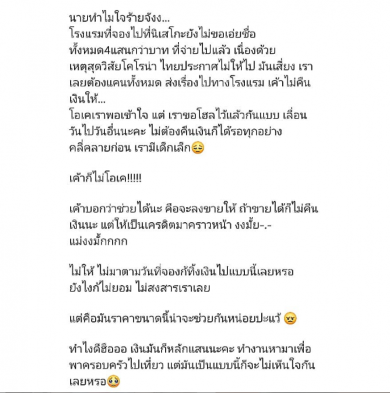 ขอให้ได้เงินคืนหรือเลื่อนเวลาเข้าพักโรงแรมได้นะคะสาวนิวเคลียร์