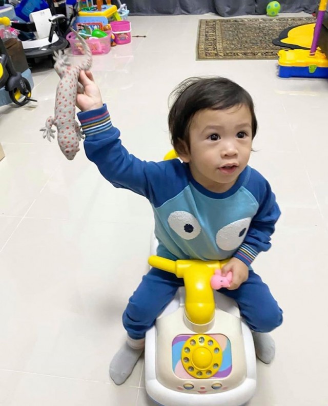 น้องโพธิ์จะเอาตุ๊กแกไปด้วยทุกที่