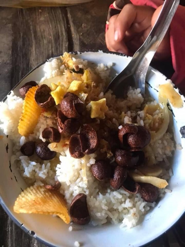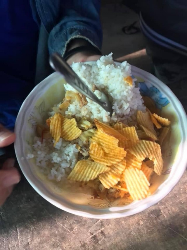 น้องๆเอาขนมที่ไปแจก มากินกับข้าวเปล่า เป็นภาพที่น่าสงสารมาก
