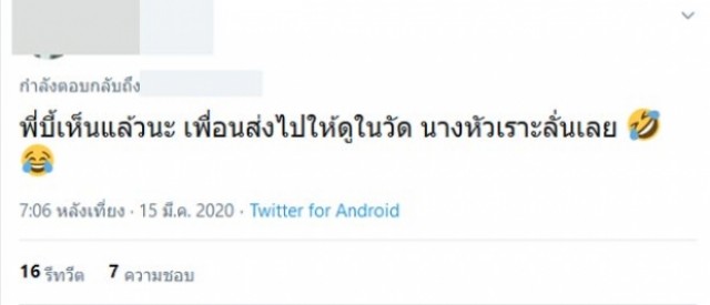 ล่าสุดได้มีแฟนคลับคนหนึ่งมาบอกว่า หนุ่ม บี้ สุกฤษฎิ์ ได้รับรู้แล้ว ถึงกับหัวเราะลั่นเลยทีเดียว